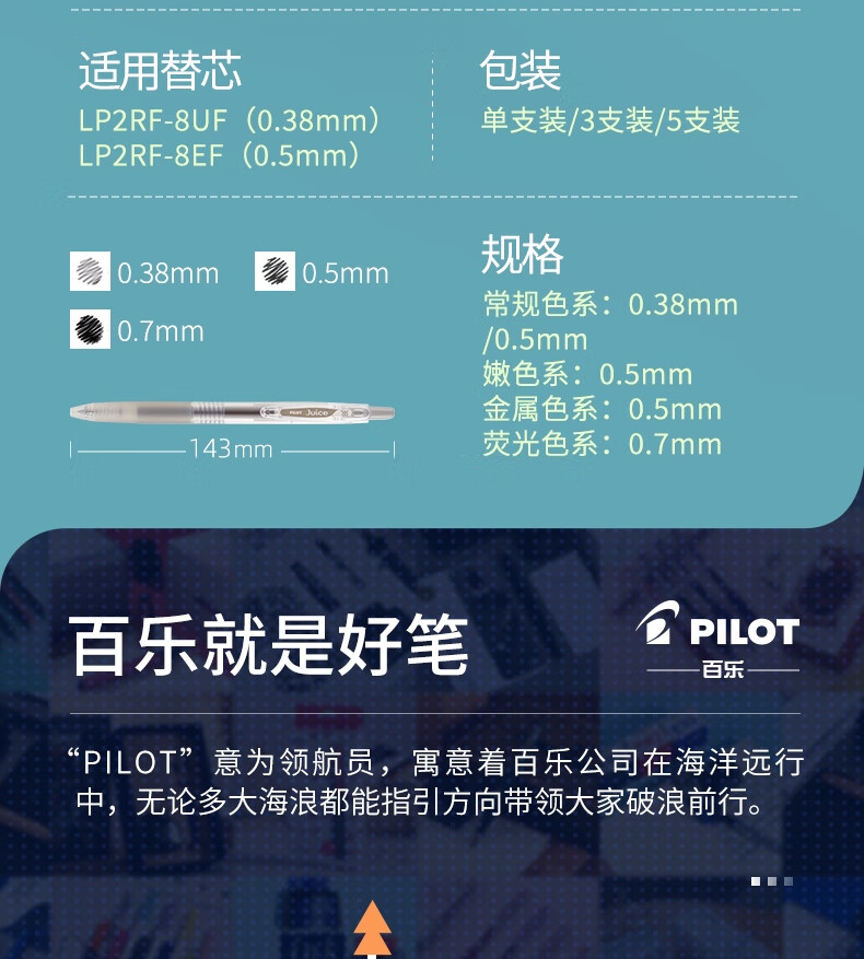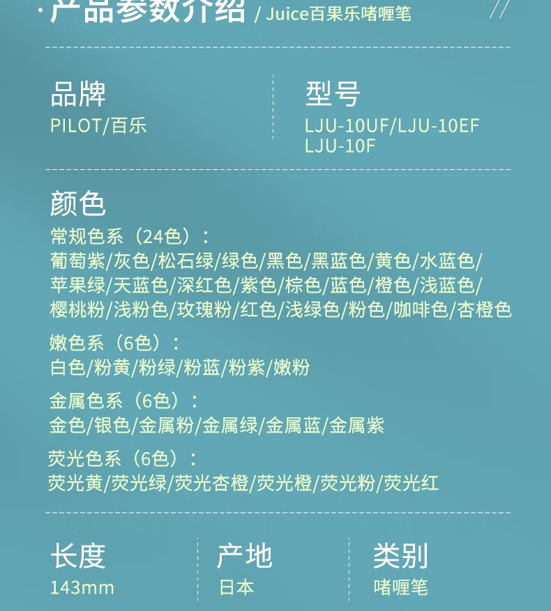 百乐 中性笔 LJU-120EF-12C 0.5mm 子弹头 按挚式 12色/套 百乐果汁笔 UICE啫喱笔 混色