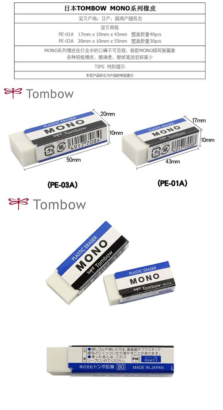蜻蜓Tombow PE-03A 屑少干净橡皮擦 中号