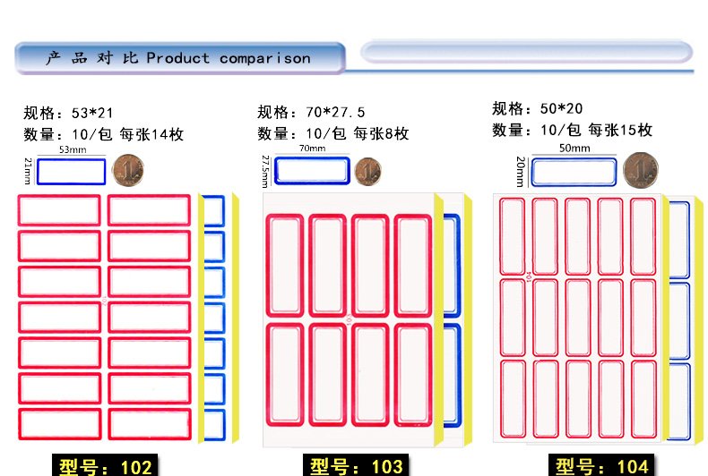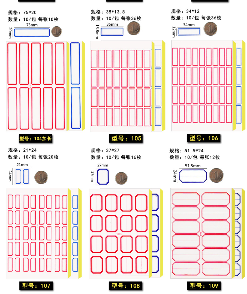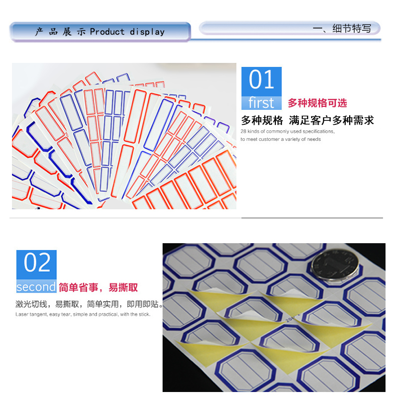 卓联 自粘性标签 ZL105 33*12mm 32枚/张 10张/本 蓝色