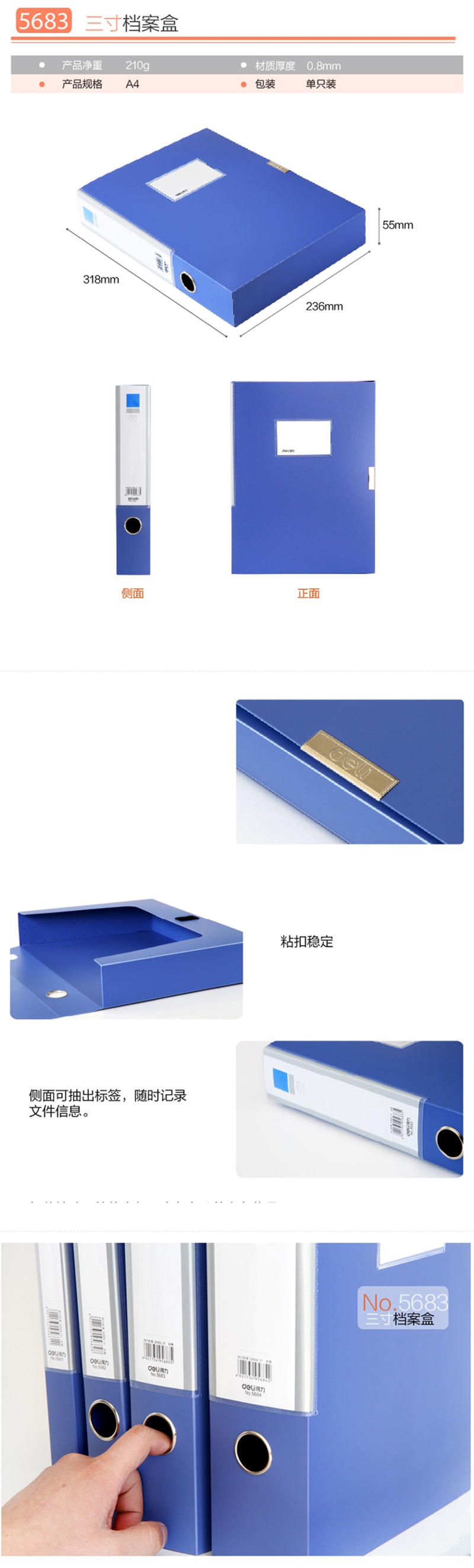 得力5683档案盒(蓝)